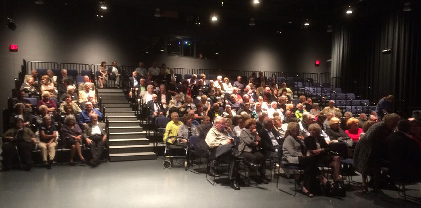 | Above: Taken in the lobby of the Nancy Marine Theatre, some 140 people gathered for a great night. 90 Classmates. A great buffet catered by Chatterly's, and an epic performance by the Bronx Wanderers completed the night ! |