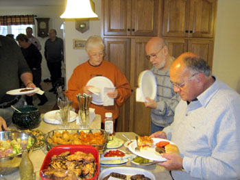 ![]() And yes, refreshments were served !!!Note, below, Roger requesting more whipped cream, and Barbara making sure she didn't miss any ! |