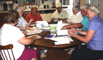 Photo below shows your committee hard at work at the home of Don and Donna Marciano. Light refreshments were served and we thank the Marcianos for their hospitality !