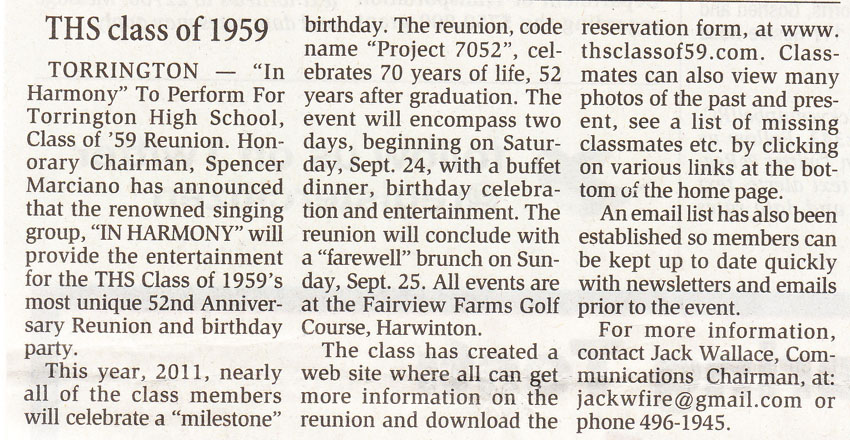 plans for the THS Class of 1959's most unique 52nd Anniversary Reunion and